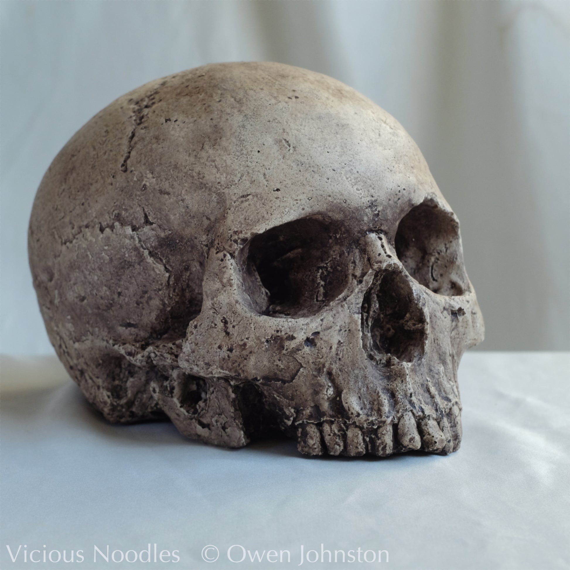 The photographs are of the actual piece, I photograph each piece individually rather than using stock photos as there is a certain degree of variation between individual skulls, this means the skull you will receive will be a unique item.